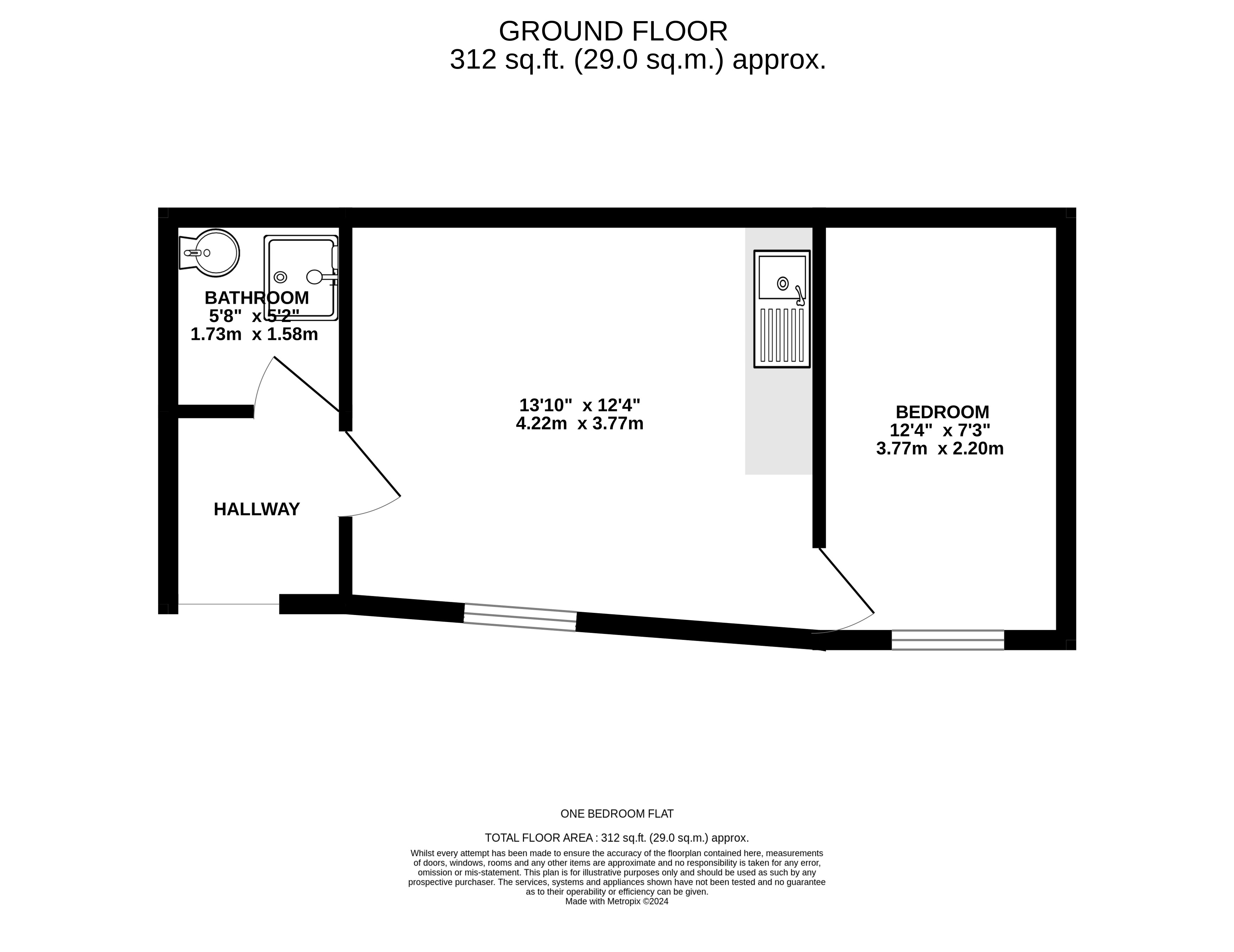 One Bedroom Lower Ground Floor Flat in Need of Renovation with Small Outside Space in Lind Street, Ryde, Isle Of Wight, PO33 2NQ - Share of Freehold & Vacant