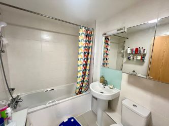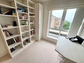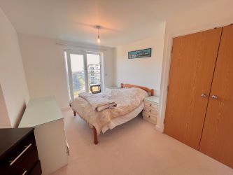 Stepping into this contemporary apartment on the fifth floor you are greeted by a welcoming entrance hallway. There is a modern feel throughout and two sets of sliding doors that give direct access to the balconies from the living room and master bedroom. A modern separate WC, boiler cupboard and cloakroom can be accessed from the hallway. Set back from the reception room you will find the recessed high-spec modern fitted kitchen which benefits from granite work surfaces, integrated appliances, generous work-space, ample cupboard storage and accent lighting.