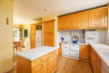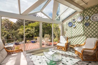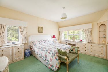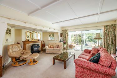 The living room has many character features such as a large, almost ‘inglenook’ fire recess and ceiling panelling, and the room is flooded with light from windows at either end. A sun/garden room is accessed from the living room which is ideal for year-round enjoyment of the gardens.
