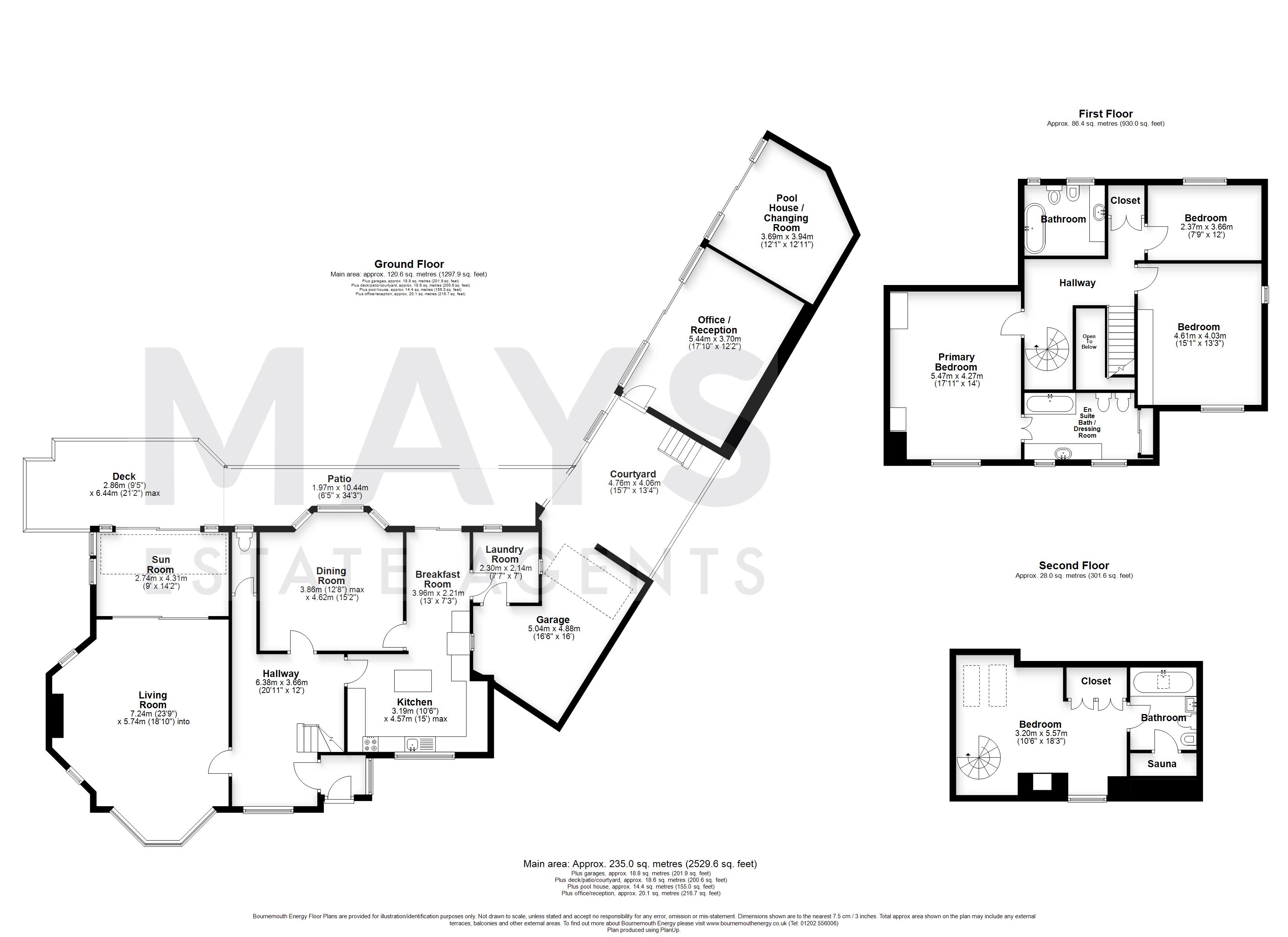 The principal bedroom is a superb size and enjoys the benefit of a spacious ensuite bathroom with a dressing room and a full-width balcony with sea views. There are two further bedrooms on the first floor which have the use of the family bathroom. A spiral staircase rises from the galleried landing to the second floor where there is a bedroom suite with private bathroom and sauna.