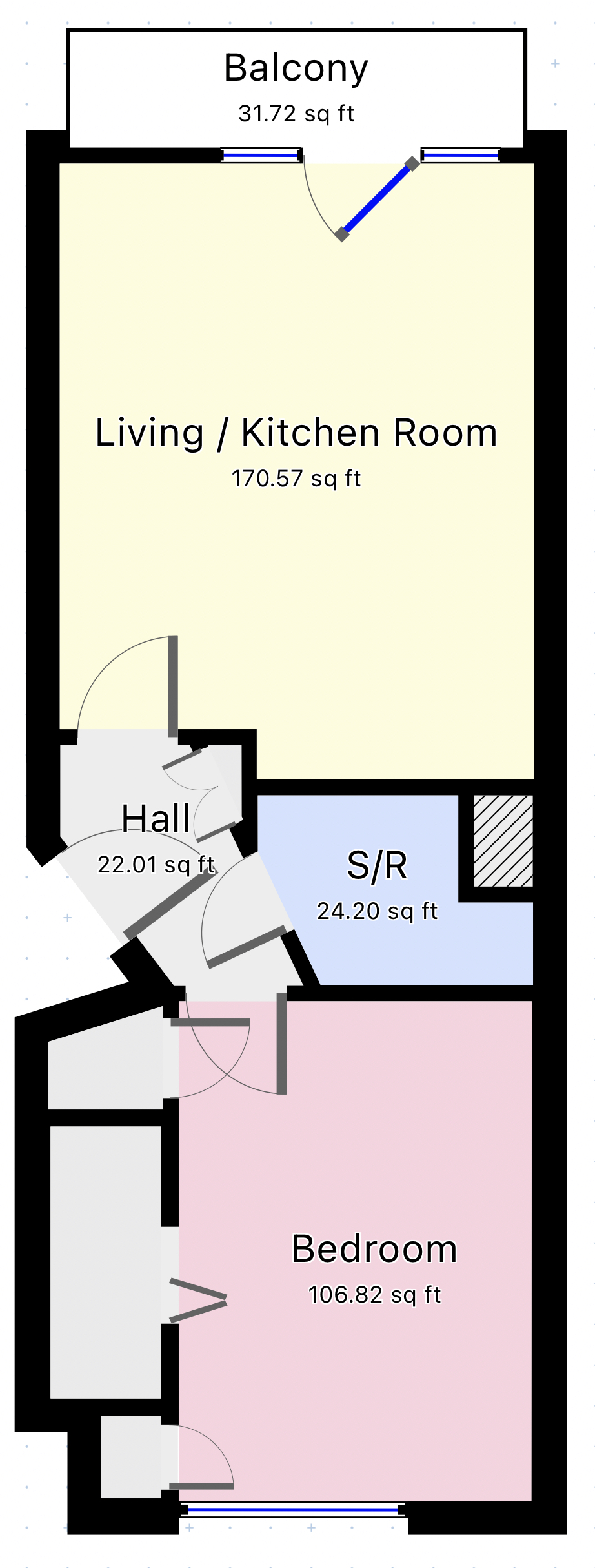 Balcony: 11' 2'' x 2' 10'' (3.40m x 0.86m)