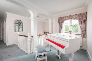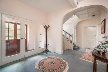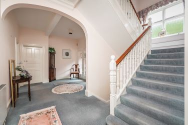 On entering the property, you can’t fail to be impressed with the size and grandeur of the reception hallway. A convenient cloakroom and entrance porch are located from the hallway and a beautiful low rise, wide staircase rises to the first floor. The principal reception room is flooded with light from windows on three sides and double doors open from this room to a formal dining room, which overlooks the grounds to the rear. When these doors are open there is a tremendous amount of space which would be ideal for grand-scale entertaining.