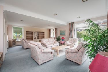 The grounds are simply stunning, with an undulating lawn being surrounded by mature landscaped planting. A large patio extends across the rear of the property and side access leads to a large double garage. The plot offers tremendous width and further gardens continue to the left-hand side of the house.
