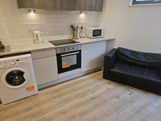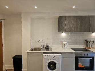 Situated on the 1st floor access is through a private lobby into the apartment. Opening in the living space is a fully fitted kitchen with integrated cooker and fridge freezer, under counter space and plumbing for a full sized washing machine.