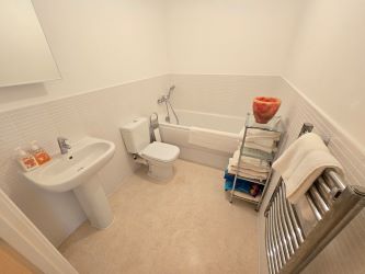 Offered with no forward chain and presented in excellent decorative order, this high-spec property features a bright open-plan kitchen/living/dining space with integrated appliances and a spacious balcony, perfect for coastal living. Both double bedrooms include built-in wardrobes, with the master benefiting from a fully tiled ensuite, plus a separate family bathroom.