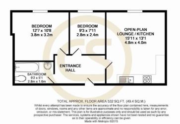 To the rear, the apartment offers two spacious double bedrooms and a newly refurbished three-piece bathroom suite, complete with stylish tiling and a shower over the bath.