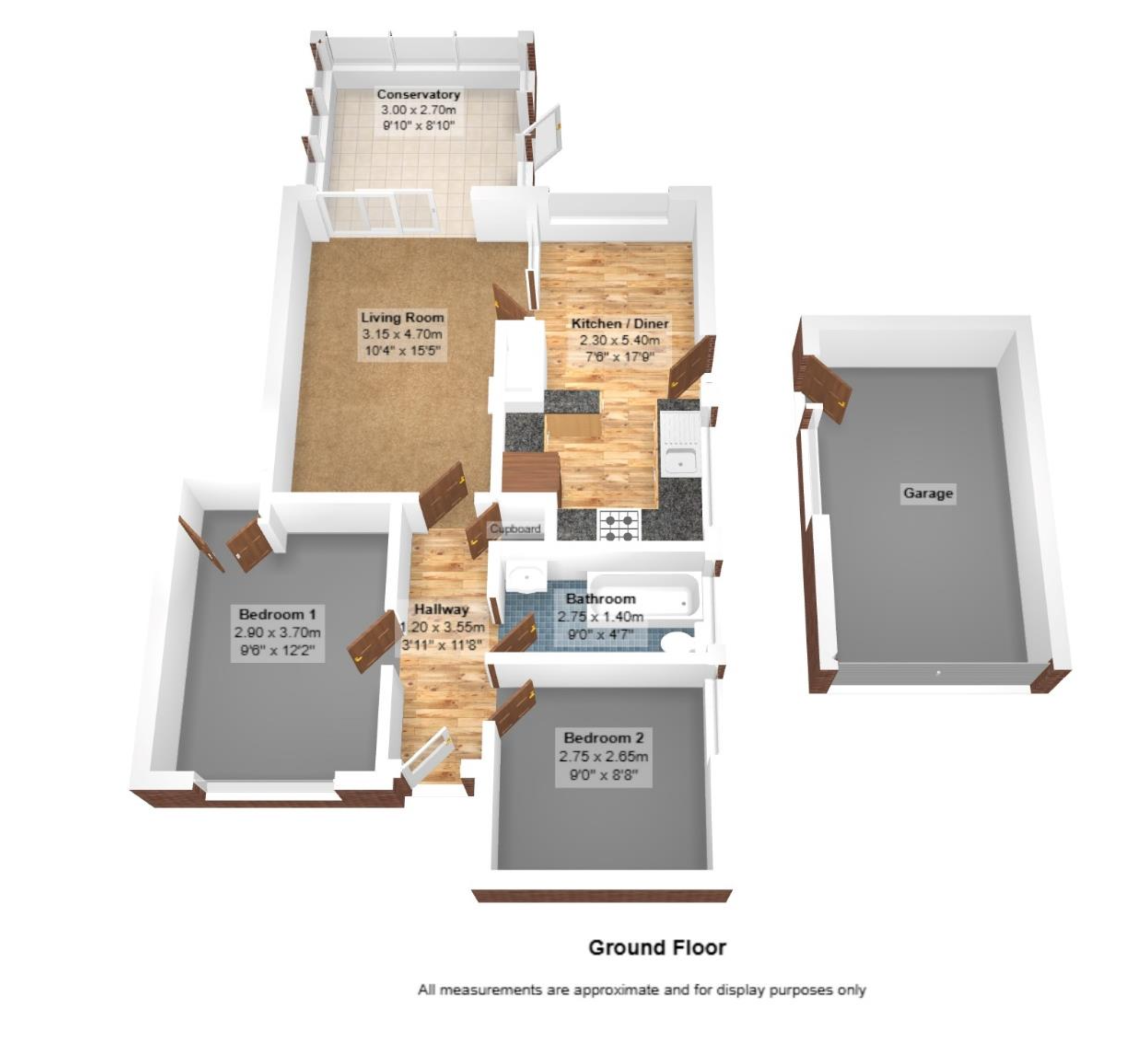 To the front of the property there are two bedrooms one with a built-in wardrobe, and a family bathroom with a shower off the taps. To the rear of the property there is a living room with an inset gas fire, a conservatory overlooking the garden and a kitchen diner accessed from the living room. Outside there is driveway parking for 2-3 vehicles, a standalone single garage and 2 wooden sheds. To the rear of the property there is a garden that benefits from a small patio area located next to the conservatory, a large lawn and several mature plants, bushes, and trees. The property benefits from gas central heating and double glazing throughout. The property is sold unconditionally subject to probate being granted.
