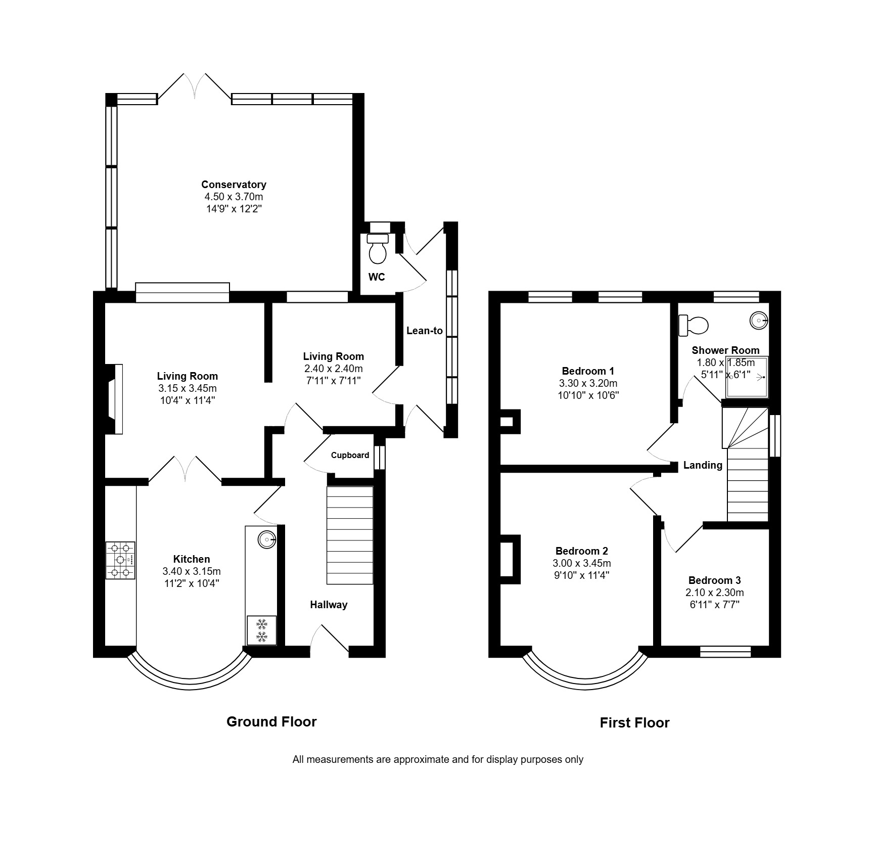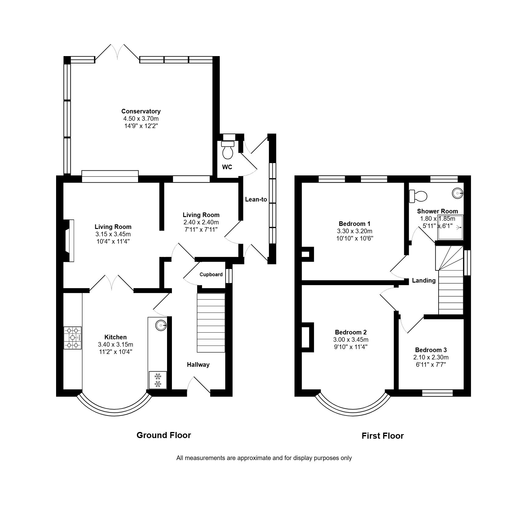 . Bedroom 2: 3.00m x 3.45m (9'10" x 11'4")