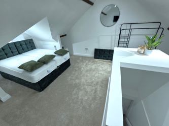The spacious landing further benefits from access to a very large loft bedroom, which comfortably accommodates a king-size bed and additional furniture, making it ideal as a bedroom, home office, or flexible living space.