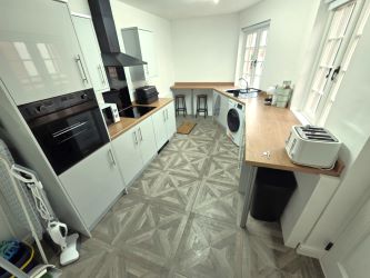 The ground floor offers a generous through lounge/diner, creating an inviting and versatile living space, which flows seamlessly into the spacious, well-designed kitchen. The kitchen enjoys excellent natural light and provides ample room for both cooking and entertaining. To the first floor is a well-proportioned double bedroom alongside a truly exquisite four-piece bathroom, featuring a freestanding bath and a double shower cubicle, finished to a luxurious standard.